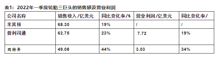 輪胎三巨頭一季度銷售業(yè)績大比拼